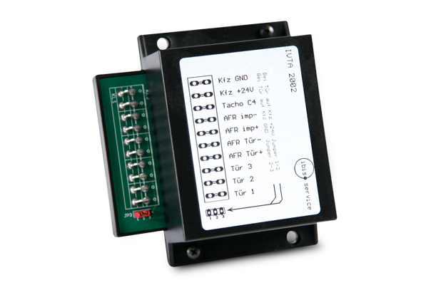 Der IVTA 2002 verstärkt die von einem Tachografen (z.B. Kienzle 1314 oder 1318) ausgegebenen Impulse und gibt sie auf einen zur Übertragung geeigneten Open-Kollektor-Ausgang. Außerdem können die Öffnungszustände von bis zu drei Bustüren mit einem Meldeausgang genutzt werden.